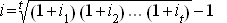 Wird ein Kapital jährlich mit einem (jeweils verschiedenen) Zinssatz ij verzinst, so berechnet sich der effektive Zinssatz bzw. die Rendite i zu: